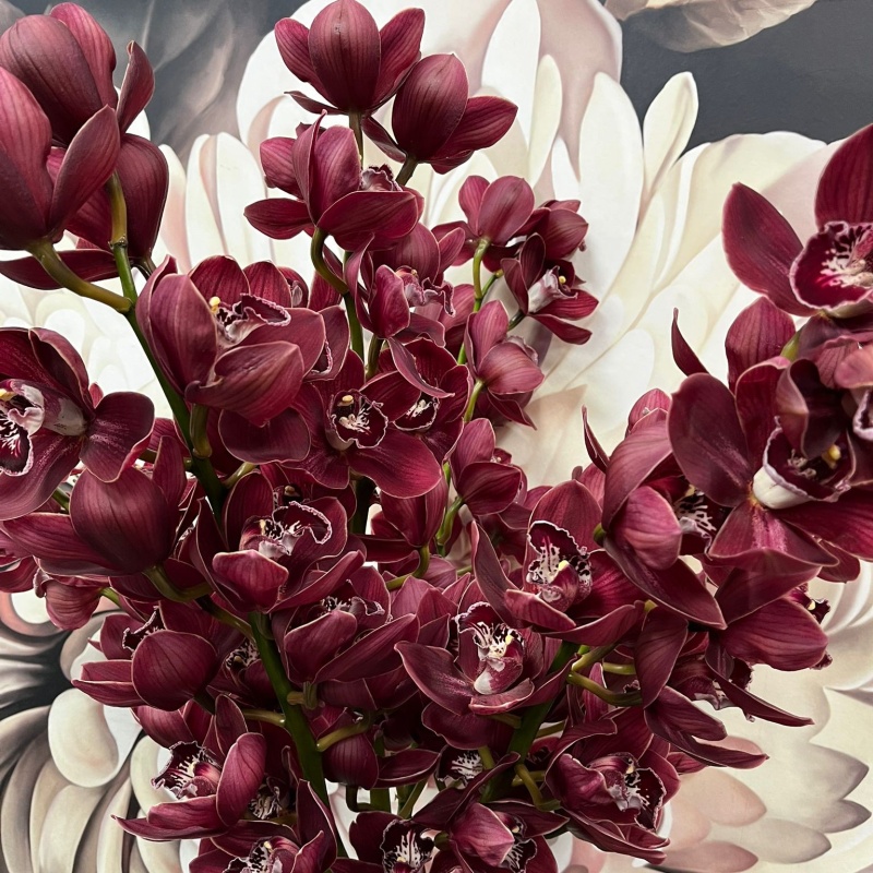 Orhidee Cymbidium on luksuslik ja pikalt säiliv lõikelill, mis sobib koju vaasi või kingituseks üksiku oksana või suurema kimbuna. Varre pikkus on 60-80cm, kellukate arv min 9. Lillede värv võib muutuda, seepärast palume kontrollida saadavust telefoni, e-maili või sms teel.